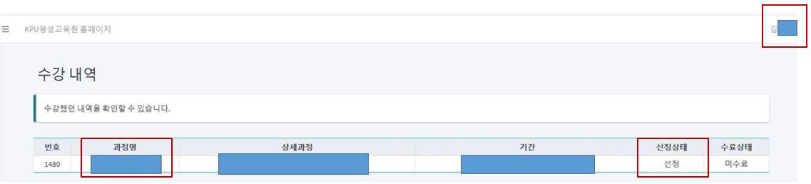 접수 내역의 사진이나 스크린샷을 저장하시 분은 lifelong@kpu.ac.kr로 보내주세요.